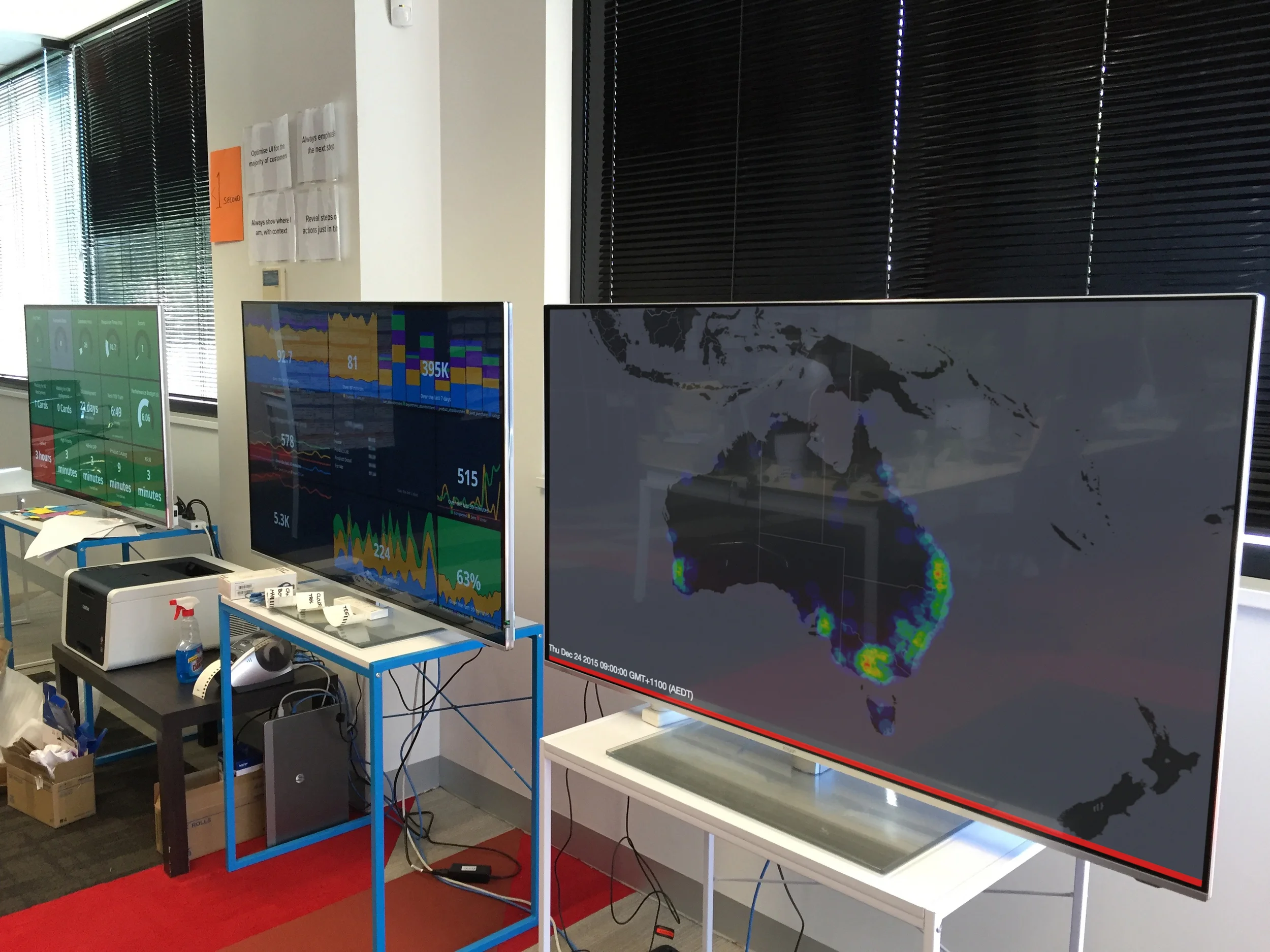 My goal for this hack day was to build a display to visualise customer purchase behaviour across Australia. The idea was to overlay a heatmap of sales across a map, cycling through the last 24 hours of data.